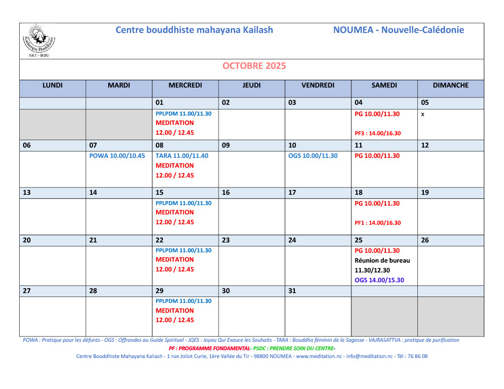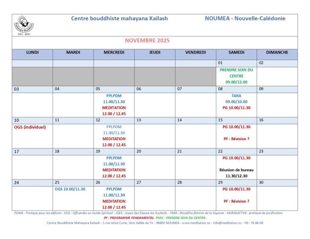 N’hésitez pas à nous contacter par mails « info@meditation.nc » pour plus de précisions…